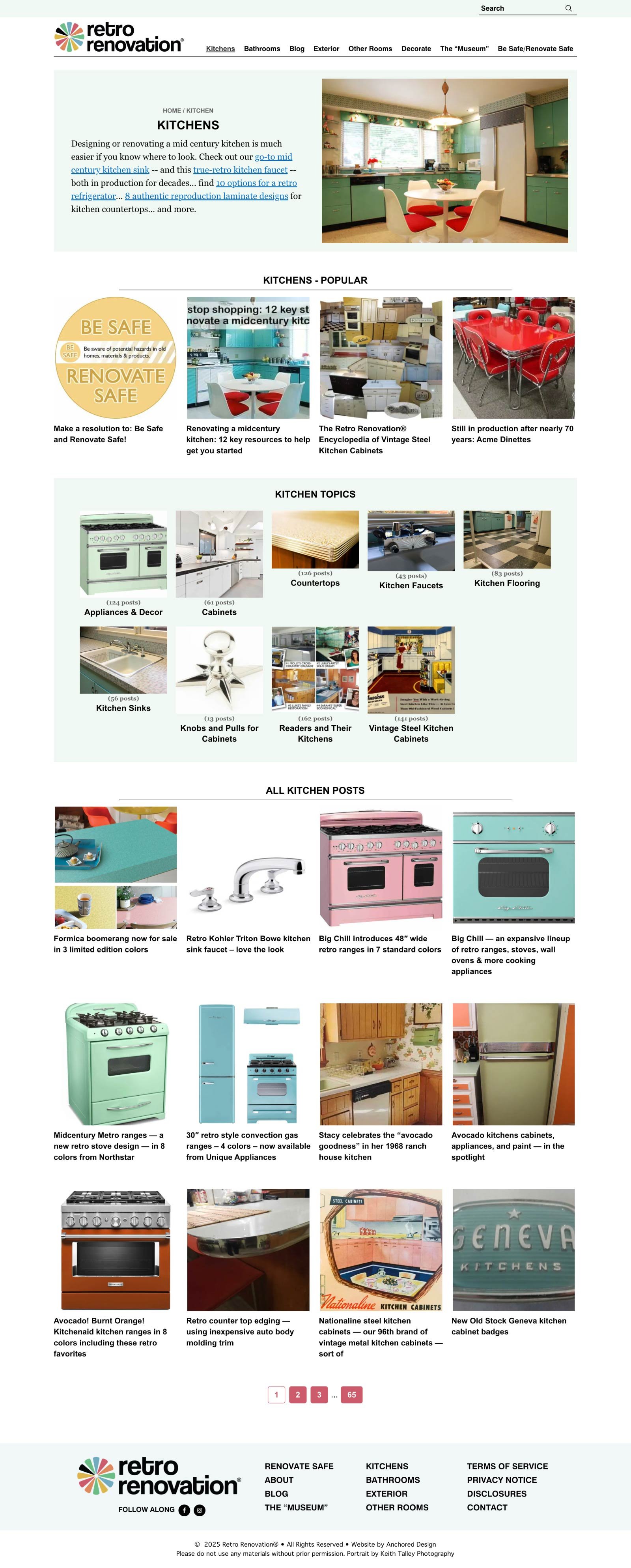 From the primary categories: Kitchens, Bathrooms, Get Started and Curb Appeal, the website is built with user-friendly workflows and mobile functionality in mind. Complete with pops of retro color and branding elements making it easy to browse and read Pam’s incredible resources.